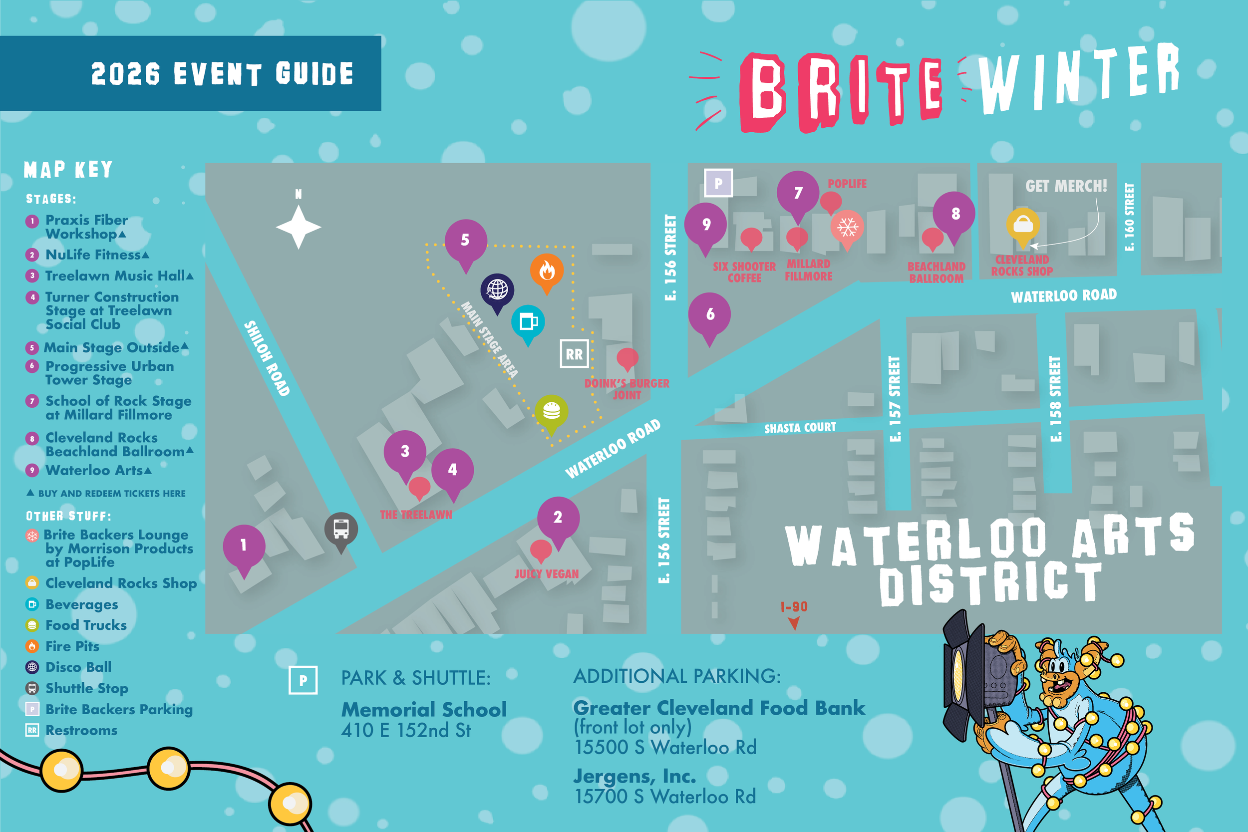 Experience extra energy on the East Bank of the Flats in late February! Brite Winter brings together people of all ages, incomes, and backgrounds, allowing them to discover new music and art while enjoying their community. Over more than fifteen years and across four locations, the festival has welcomed tens of thousands of guests, showcased hundreds of bands and artists, and thrived in temperatures ranging from 8 to 69 degrees. Brite Winter is not just a festival for the community—it’s one created with the community.
